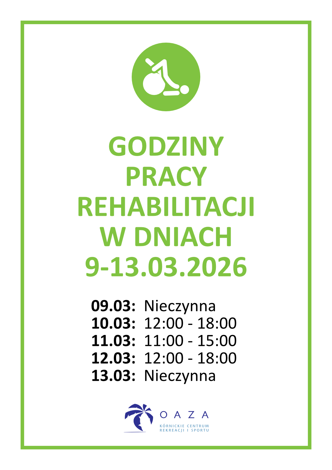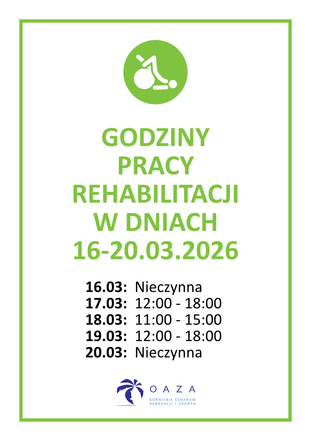 Godziny otwarcia - Rehabilitacja