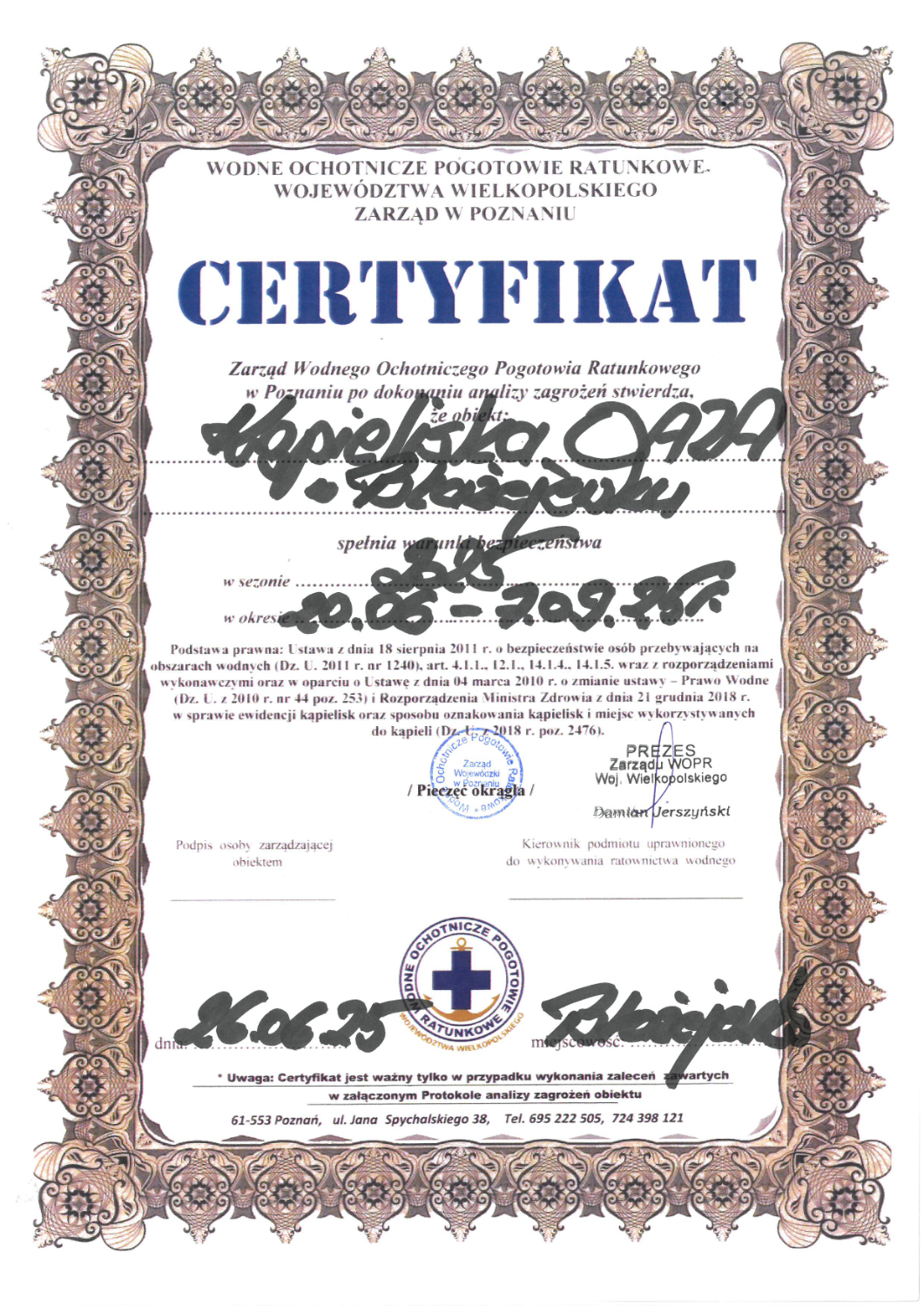 Regulamin Kąpieliska OAZA - Błażejewko